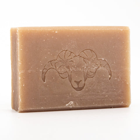 The soap is embossed with an image of a ram.